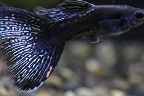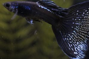 オスは上半身の金属的な色彩のボディにブラックを基調としたレース模様の尾ビレがマッチした美しい個体です。