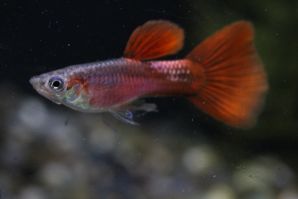 オスはプロポーションが良好で、レッドを基調としたボデイと背ビレ、尾ビレが美しい個体です。