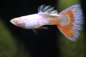 オスは光沢のあるシルバーのボディにモザイク模様の尾ビレがマッチした美しい個体です。
