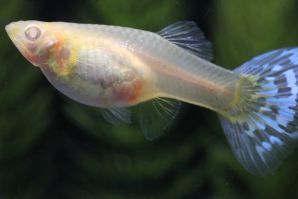 オスは光沢のあるシルバーのボディにアイボリーを基調としたモザイク模様の尾ビレがマッチした美しい個体です。